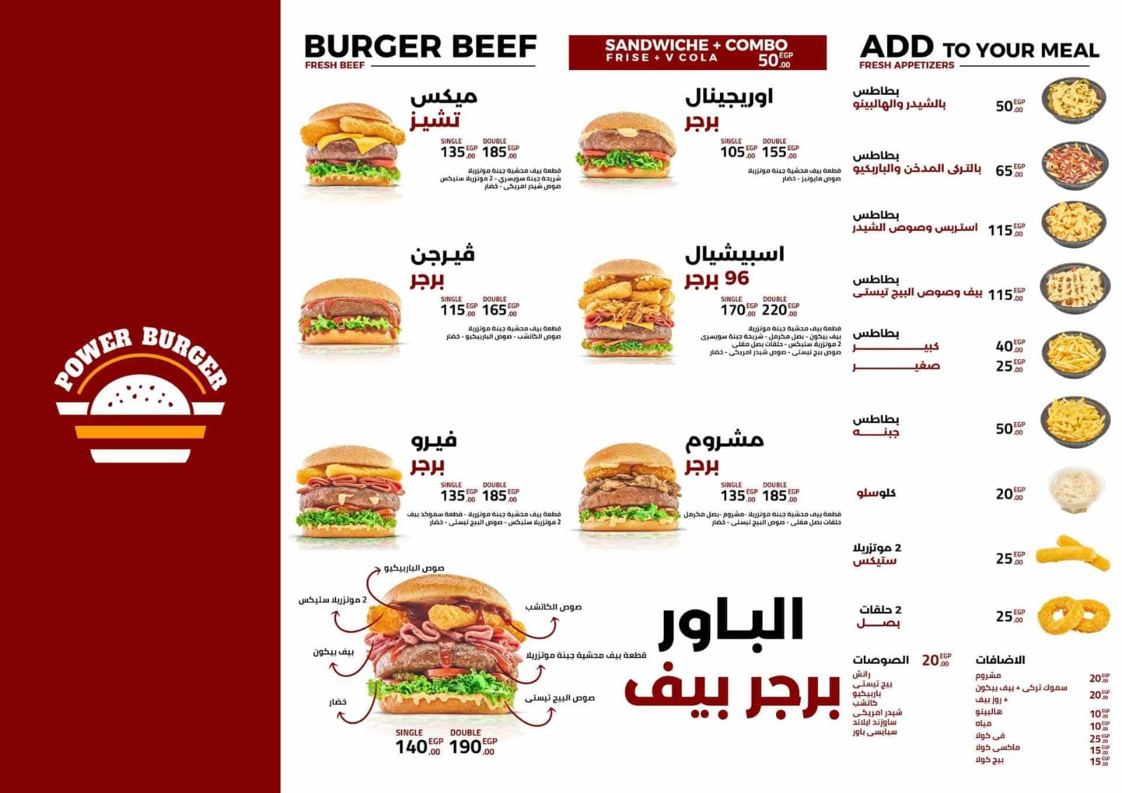 باور برجر يقدم برجر مشوي علي الفحم محشي جبنه وساندوتشات فرايد تشيكن ووجبات